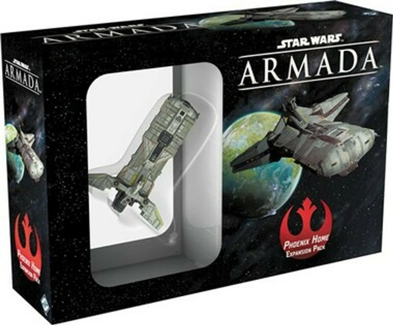As the heart of the fledgling Rebel fleet, the modified Pelta-class ship Phoenix Home leads the struggle against the evil Empire. What this ship lacks in size and firepower, it makes up in its ability to control the battle, playing a crucial role as a coordinator of capital ships and fighter squadrons alike. This pack includes everything you need to add 1 Phoenix Home to your game.